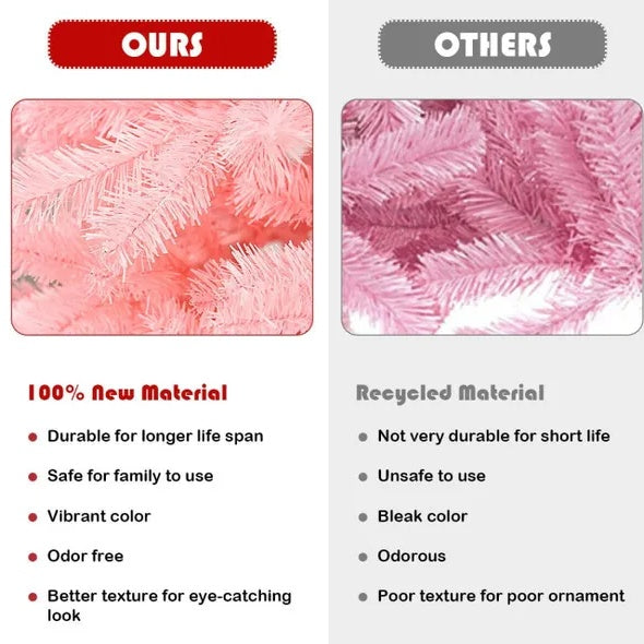 This stunning pink Christmas tree is designed to captivate and enchant, offering a delightful twist on traditional holiday decor. With its unique cherry blossom color, it stands out beautifully against the typical green and white trees, making it a perfect centerpiece for any festive occasion. The tree features a full-bodied shape with 1,036 branch tips, ensuring a lush and flourishing appearance that adds elegance to your home, shop, or event space. Crafted from 100% new PVC material, this tree is not only visually appealing but also safe and durable, providing a better user experience without any unpleasant odors or allergens.